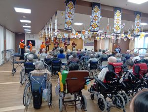 12月18日(木) 今日は福寿のクリスマス会を開催しました。 今年もトキアンサンブルのみさんが来てくださいました(#^^#) クリスマスソングや懐かしの曲を歌ったり演奏したり、踊ったり・・・♡ みんなの笑顔が溢れていました♪
