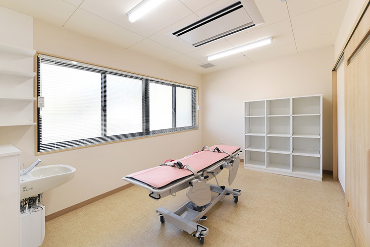 体の不自由な入所者に対して寝たままの姿勢で快適にご入浴して頂く為に、専用の入浴装置をご用意しております。