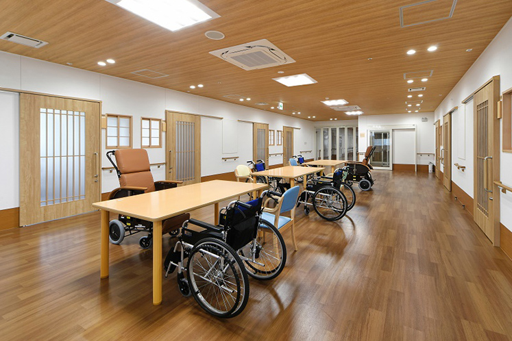 お食事やテレビを観ながらのんびりと過ごしていただけ、機能訓練やレクリエーションの場として多目的に使用できます。