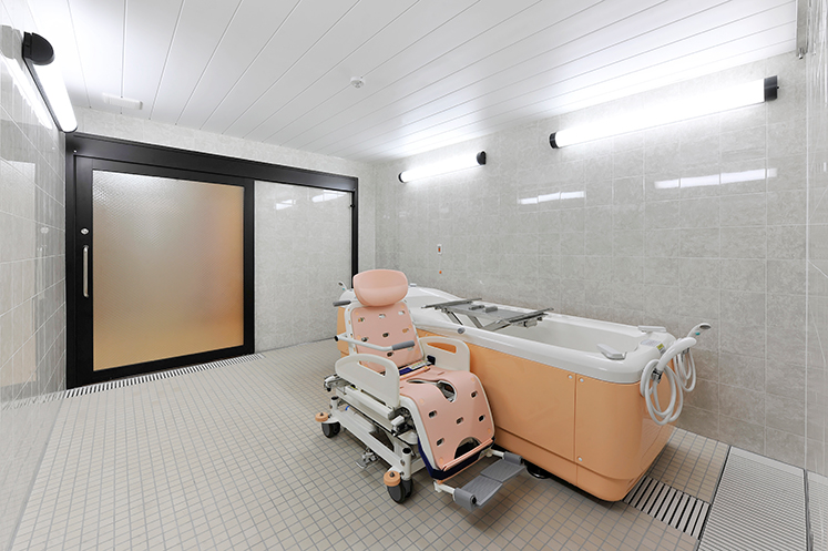 体の不自由なの利用者の方にに対して寝たままの姿勢で快適にご入浴頂く為に、専用の入浴装置をご用意しております。